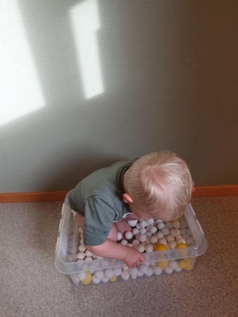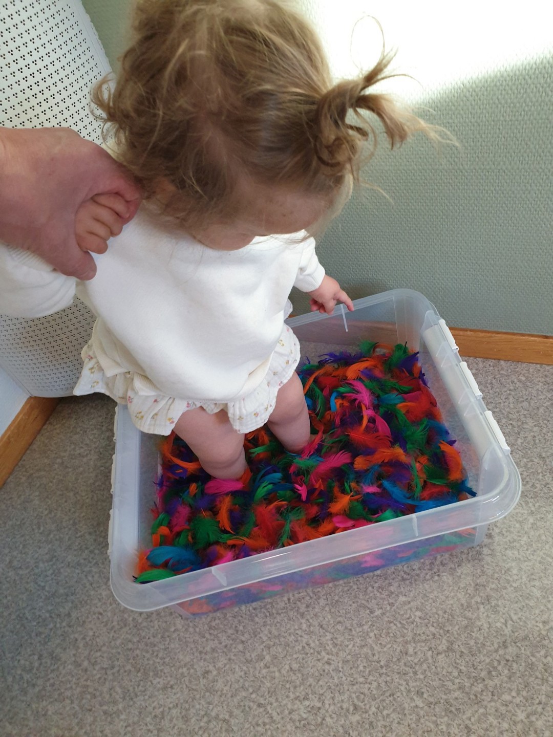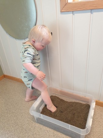 For de aller minste her i Bjørnsgård tilrettelegger vi i størst mulig grad til sansestimulerende aktiviteter og ulik form for bevegelse. Vi vet at hjernen trenger erfaringer med ulike sanseinntrykk og å automatisere bevegelse for å frigjøre plass i hjernen til å tenke og lære nye ting. Her er det bilder fra taktil sansestimulering som vi har fokus på nå