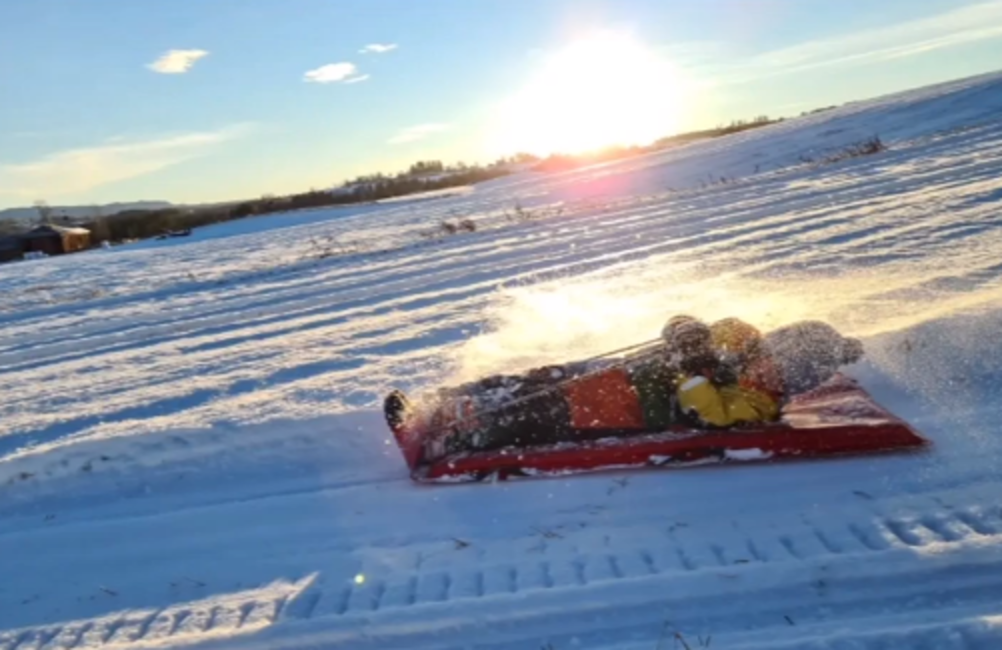 De aller minste barna tilbringer mye tid på jordet med aking. Det blir kjørt opp akebakker og gangsti, slik at barna ikke faller igjennom både når de skal ake og gå opp til toppen igjen.