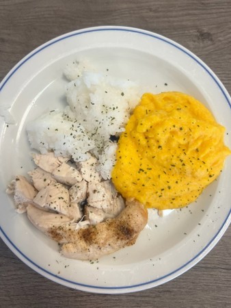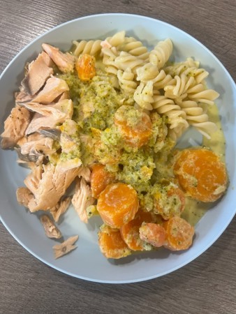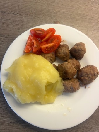 På mandager har vi grøt. Til grøten har vi frukt og bær som banan, eple, jordbær, blåbær og bringebær. Vi har også rosiner og kanel. Onsdager har vi varmmat. Vi har en meny som går over flere uker og den gjentas gjerne, slik at barna skal bli kjent med forskjellig mat. Disse dagene byttes smøremåltidet ut med varmmat. Vi har også fokus på å redusere matsvinn, så vi bytter ofte ut smøremåltid med rester eller har det som et alternativ i tillegg til smøremåltidet.