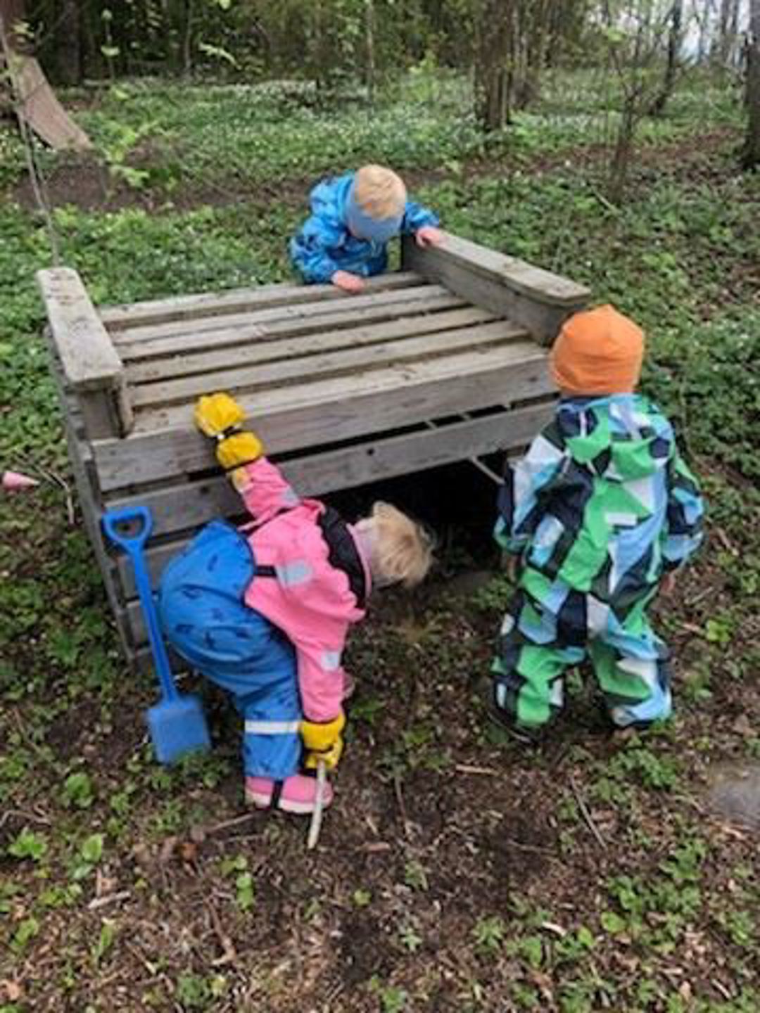 På høsten har vi rundvask av barnehagen. Vi har dugnad på uteområdet vårt noen ganger både høst og vår, det kommer litt an på hva som skal gjøres. Vi har et område i skogen med grillhytte, der er det også foresatte som hjelper til, slik at vi har best mulig forhold for barna til enhver tid.
